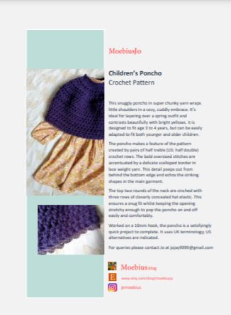 I loved the grey chunky crochet cowl in the previous post so much that I bought some yarn in purple to make one for myself. As so often happens it got diverted into another completely unrelated project and a poncho was born.