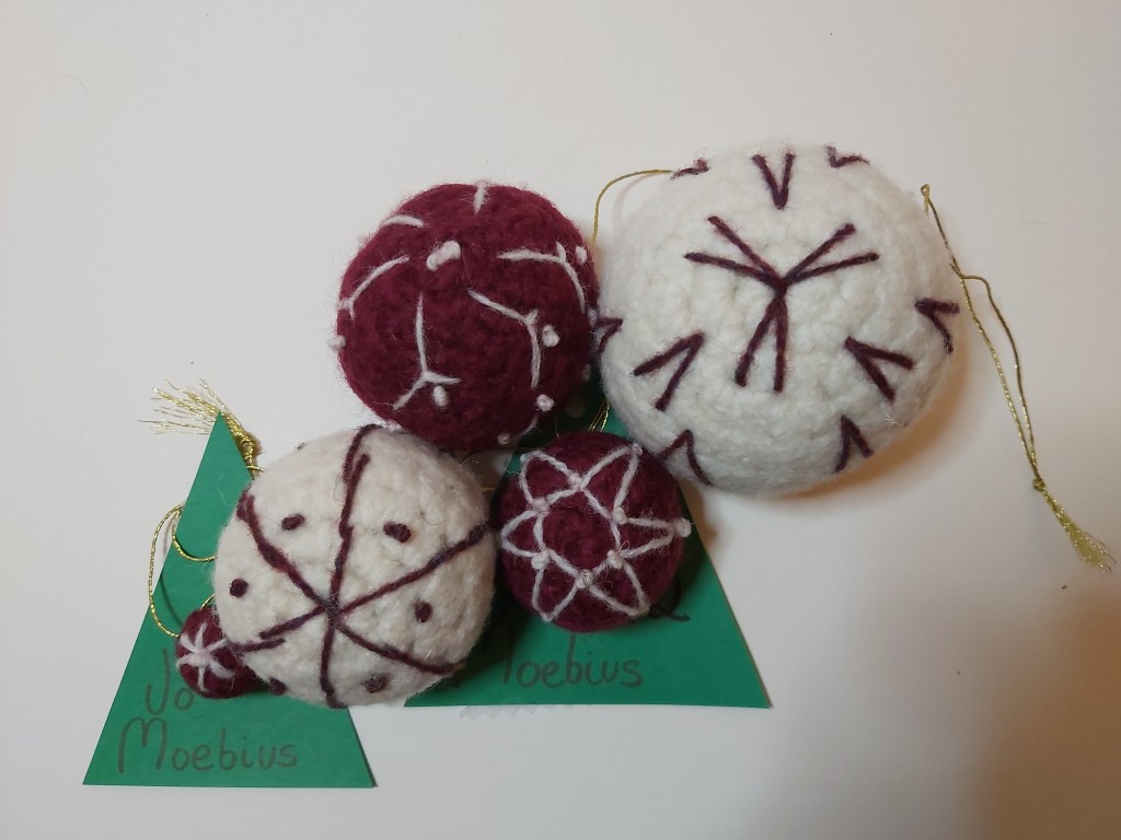 We will be selling crochet star decorations, embroidered and felted crochet baubles, soap savers, plant holders and a selection of beautifully kitsch Christmas baby booties and hats.